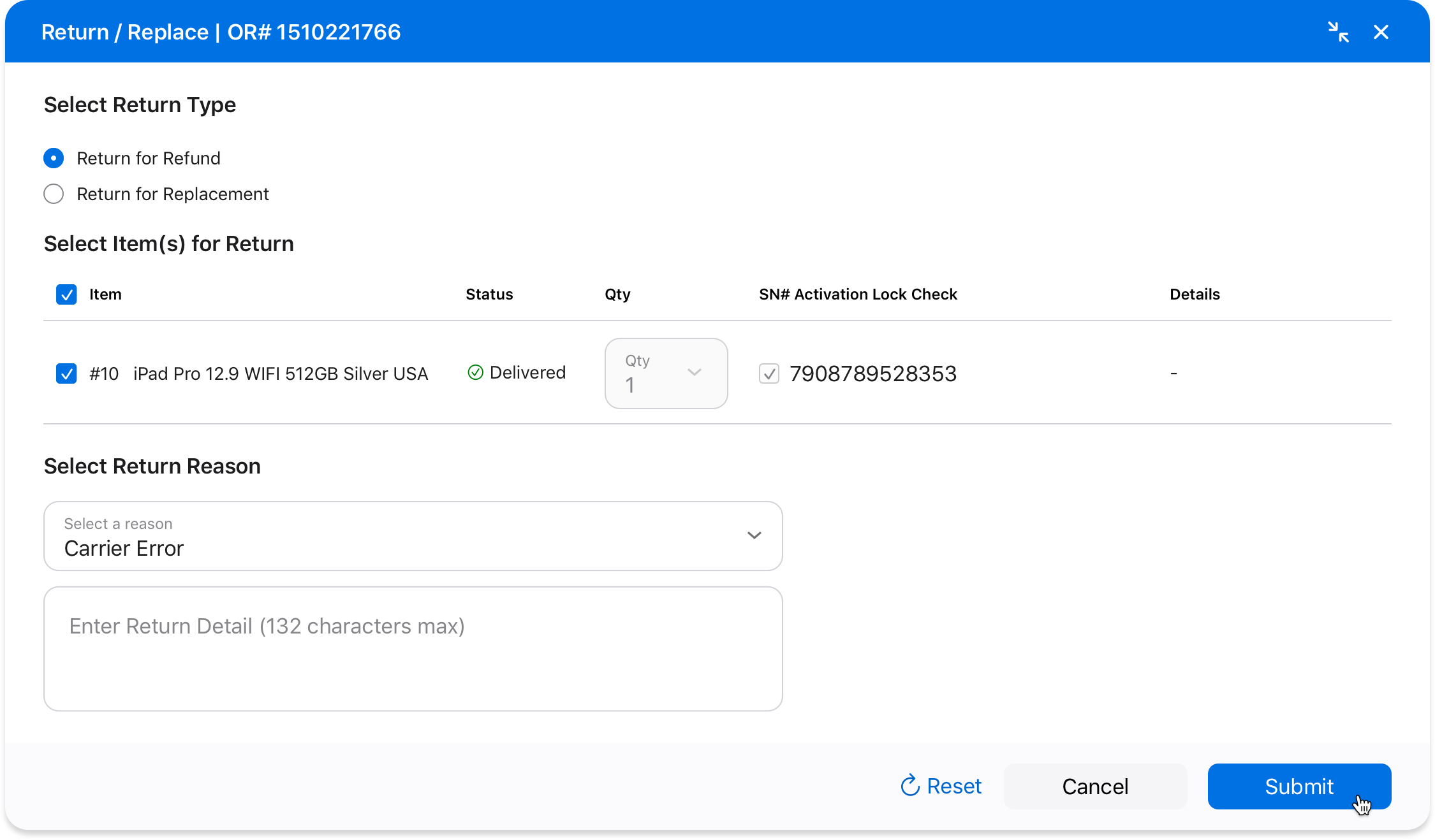 Gone are the confusing steps and frustrating delays! Returning items is a breeze with a clear starting point, step-by-step guidance, and a one-click process. This streamlined approach saves agents time and ensures a smooth return experience.
